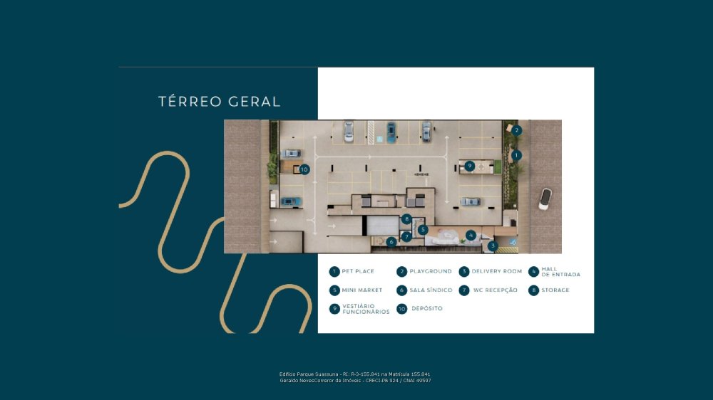 Pet place • Mini market • Playground • Sala do síndico • Recepção • Delivery room • Storage • Vestiários